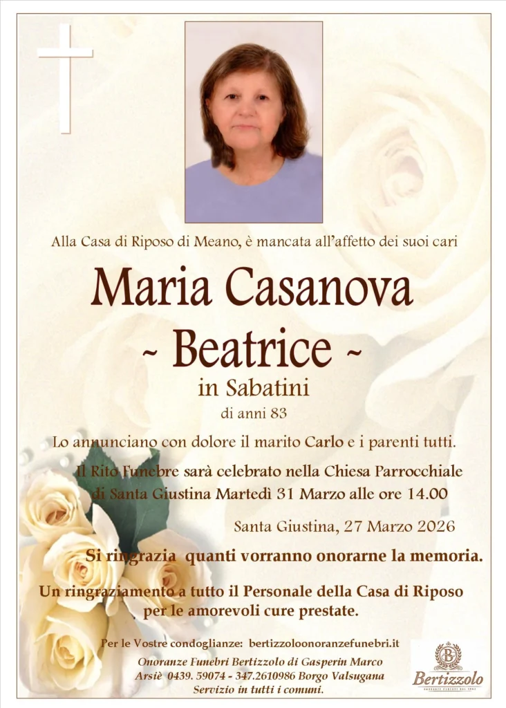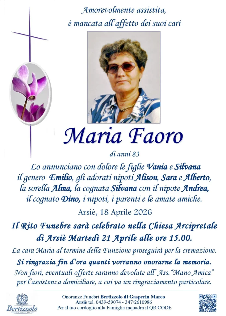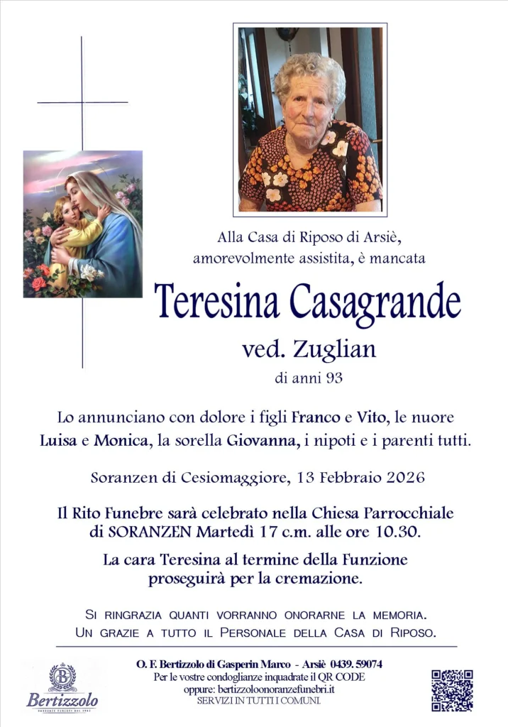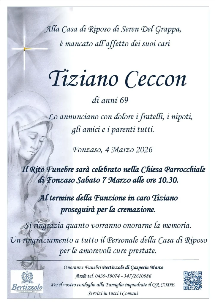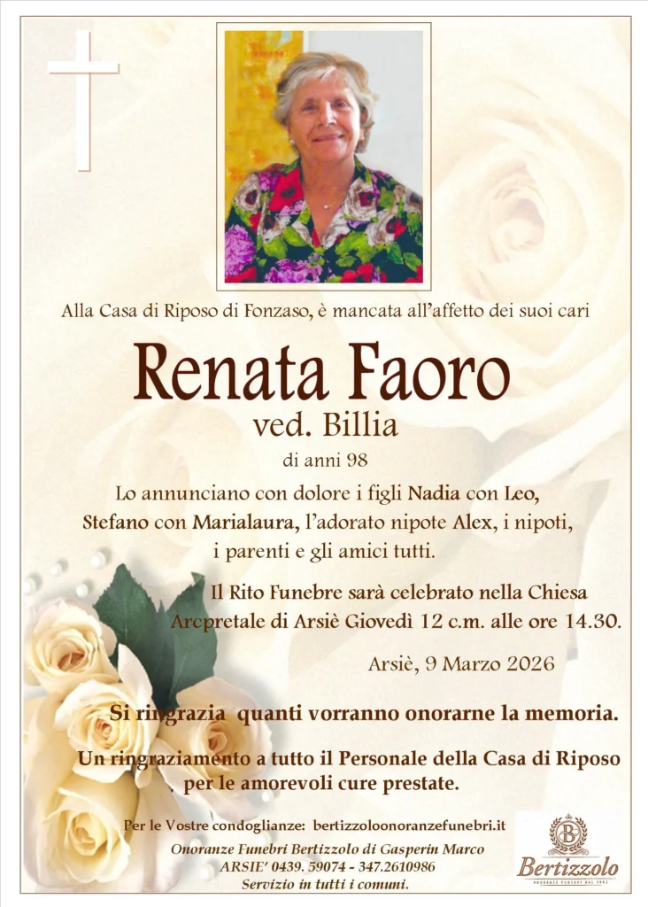 L’Impresa Funebre Bertizzolo, con sede ad Arsiè (Belluno), è il partner di fiducia per l’organizzazione di servizi funebri completi in tutta la provincia. Da anni coniughiamo un’altissima qualità del servizio con la sensibilità e la riservatezza necessarie nei momenti di lutto.